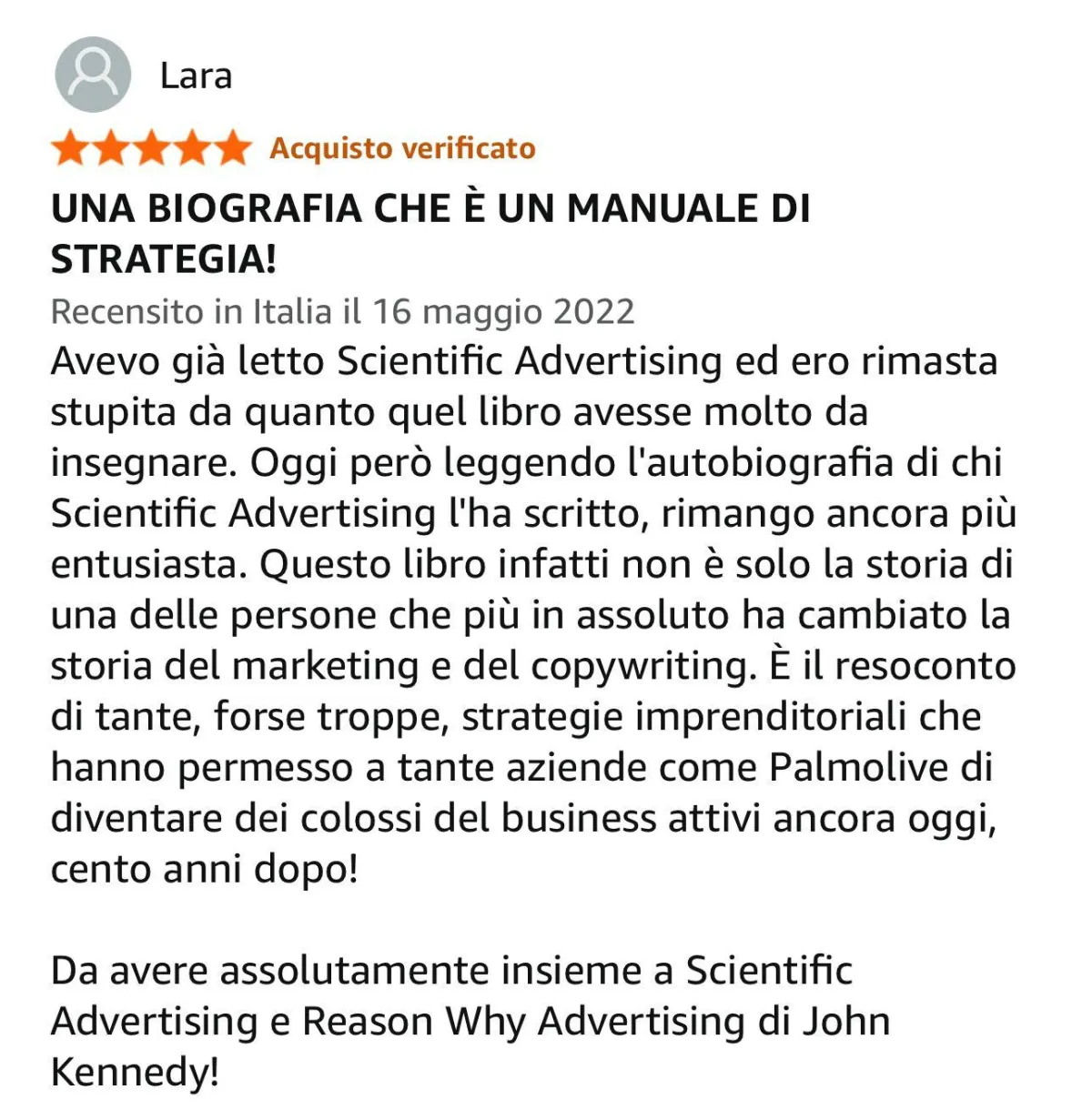 Le strategie di advertising di Claude Hopkins hanno determinato il successo di prodotti e brand utilizzati ancora oggi (hai presente Palmolive?). E ogni pubblicitario che abbia scritto una pagina nella storia dell’advertising – David Ogilvy, Gary Halbert, Dan Kennedy, per citarne solo alcuni – concorda: questa è la più importante biografia che si possa leggere se sei un imprenditore, un copywriter o un advertiser. Ogni capitolo affianca aneddoti di vita a lezioni pratiche su test, coupon e sampling vincenti ancora oggi. In più, una gallery di ads d’epoca illustra annunci che hanno generato milioni di vendite.